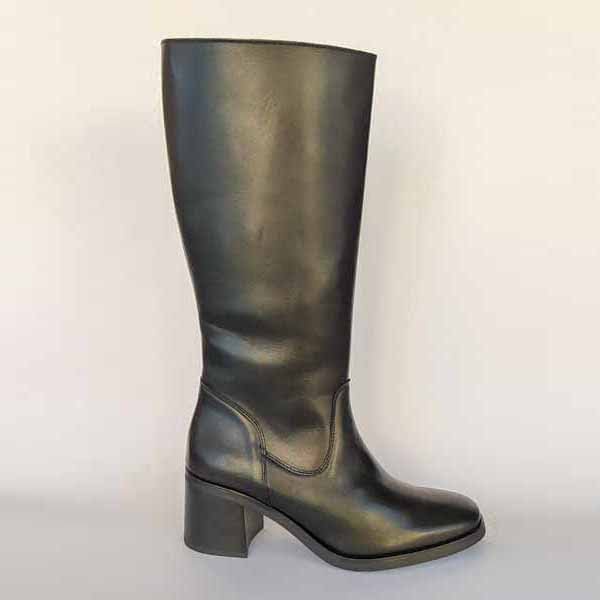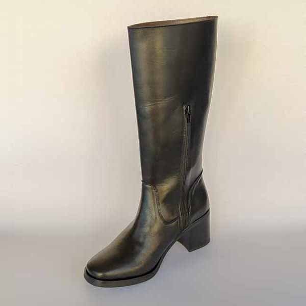 Bota Tacón Piel Negro Go-Go Boots Años 70 (4802)