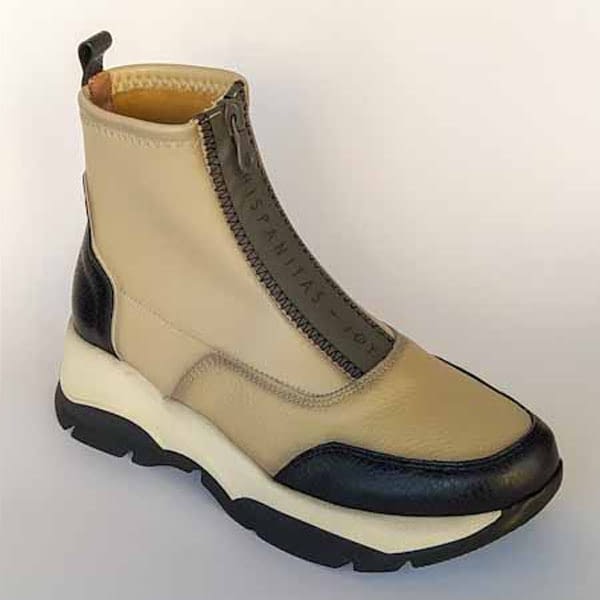 Botón plano de sport, para tu día a día. Este modelo Andes de Hispanitas, se ajuta perfectamente al pie, y es cómodo y rápido de poner, gracias a su sistema con cremallera. En cuero y ante negro, o arena, este botín es perfecto para usarlo de forma habitual por su comodidad y practicidad. Está disponible en todas las tallas entre la 35 y la 42, siempre que queden existencias disponibles.