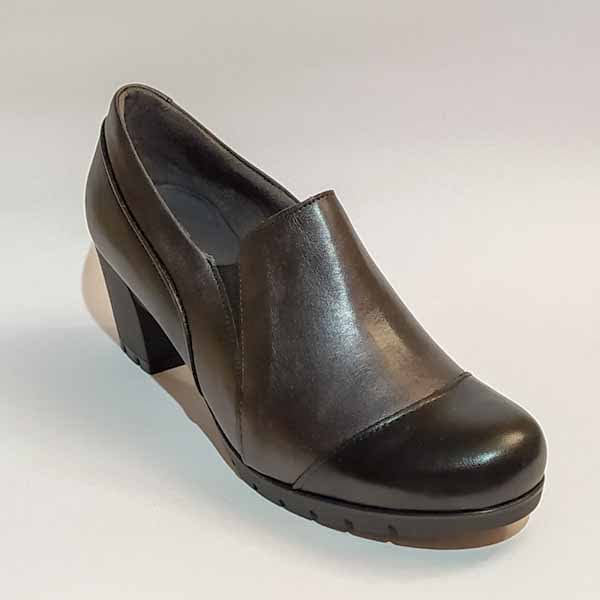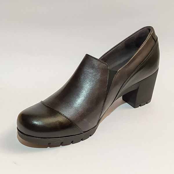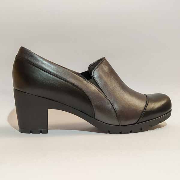 Zapato de piel abotinado con medio tacón de la narca Pitillos, muy cómodo para el día a día, con un práctico sistema de ajuste elástico que hace muy fácil ponerlo, y que se adapta perfectamente a todo tipo de pié.